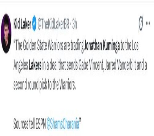 根据Shams在播客节目中的说法,湖人队愿意打包文森特、范德比尔特、1个未来次轮签去换库明加。(文森特是到期合同,范德比尔特还剩两年合同)