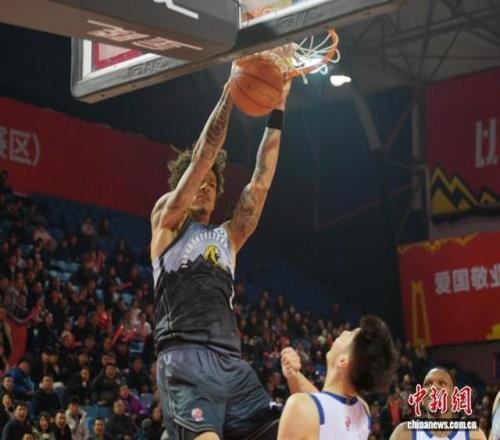 2月2日晚,吉林长春,吉林队外援威尔逊在比赛中暴扣得分。中新社记者 张瑶 摄
