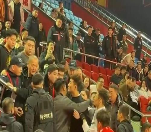 比赛输赢没什么,但场边出现了一些冲突,吉林队球场内的安保和孙铭徽一家人有言语冲突,据说安保有辱骂行为,这也让孙铭徽非常愤怒,站起来和对方理论,幸亏队友和工作人员将他死死抱住。