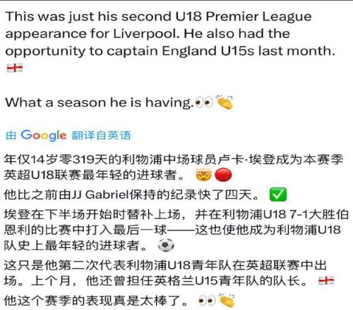 之前说到过,对比像曼城和切尔西甚至埃弗顿的尖子青训球员,利物浦在过去很多年一直没有身体很好的类型(这里指一路梯队上来的,然而实际上买到的小盆友们横向对比也不算身体特别好)这次小埃登算是在身体和技巧端直接跳了好几级。