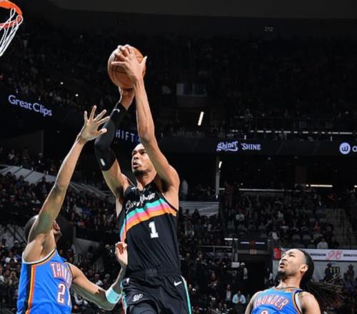 次节回来,文班快攻独闯龙潭,背后绕球过人险些隔扣威金斯,巴恩斯连中两记三分,马刺一波流领先到20分。杰林大空位接球三分手起刀落止血,威金斯点飞防守三分再投进,目前7中5、三分4中3拿到13分,雷霆42-56追至14分分差。卡斯尔补篮得手,稳住局势,威金斯三分再中、三分5中4砍下16分,布鲁克斯接球三分也中,雷霆追至10分打停马刺。福克斯加速上篮命中,布莱恩特和文班亚马连中三记三分,半场战罢,马刺73-58领先雷霆15分。