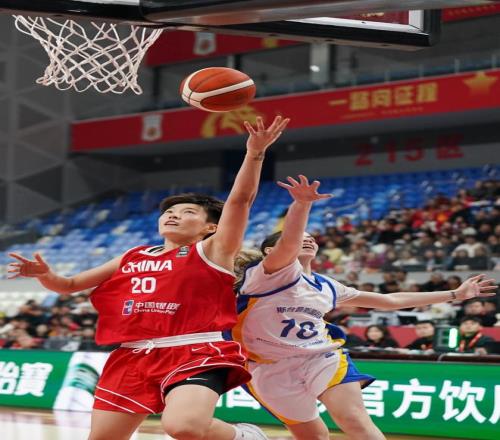 2月7日,在安徽合肥举行的2026年中国女篮热身赛中,中国队95比39战胜国际女篮联队。