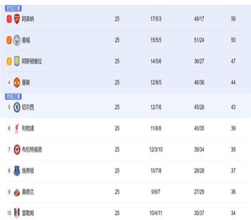 1,前4名的欧冠区:阿森纳在本赛季的欧冠联赛阶段,保持8连胜。在英超赛场上,25轮中取得了17胜5平3负的佳绩。对于枪手球迷来说,上一次夺冠已经是遥远的23年前,等待的太久太久了。本赛季真的是看到了再一次问鼎的可能性。阿尔特塔和他的球员们,要做的就是不要再在关键的冲刺阶段掉链子了。