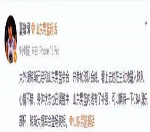 山东男篮第四外援琼斯已经正式与球队完成会合,并且也完成了注册等相关工作。据山东体育记者“夏晓司”透露,在接下来俱乐部杯季军赛中,琼斯大概率会登场亮相。山东男篮在本届俱乐部杯赛的表现可圈可点,但在半决赛面对外援优势明显的上海男篮还是败下阵来,上海男篮四外援合砍67分,而山东男篮三外援合力只拿到33分,这是球队输球的主要原因。随着大外援琼斯的加入,将会进一步丰富山东男篮的战术选择,增强球队整体竞争力。