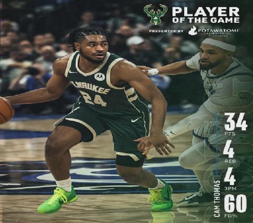 卡梅伦-托马斯,年仅24岁,21届首轮第27号秀,1米91双能卫,曾在篮网连续两个赛季场均得分20+,然而本赛季交易截止日后就被裁掉,紧接着把天赋带到了雄鹿。