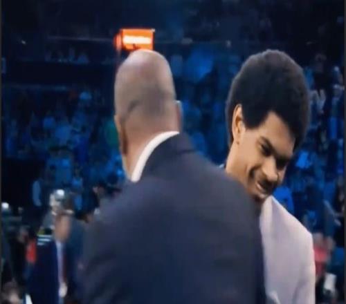 你看!这是男人最幸福的时刻,当所有人的关注点都在哈登和米切尔身上。