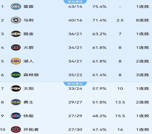 当然,无论怎么说,基本可以确定太阳锁定了一个附加赛名额,而他们上赛季拥有杜兰特常规赛只取得36胜46负排名西部第11直接无缘季后赛。