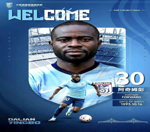 刚刚,大连英博在俱乐部官方社交账号上官宣,称经与球员友好协商一致,阿奇姆彭正式加盟大连英博足球俱乐部,成为球队的第5外援。