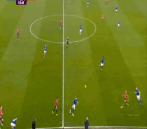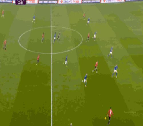 因为,从55到70分钟,埃弗顿几乎将曼联压在了半场范围内,他们用相当长线条的方式来发展自己的进攻: