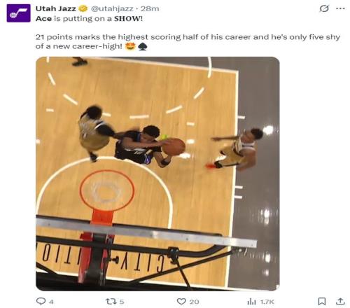 赛前爵士媒体晒出,本赛季马尔卡宁、乔治缺席时艾斯-贝利场均可以拿到19.3分6篮板2.3助攻,这位天才锋卫摇摆人身体天赋是没问题的。