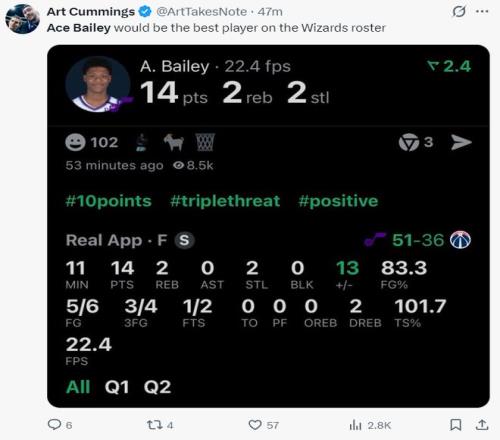 北京时间3月6日,NBA常规赛,爵士以122-112击败奇才。这场比赛爵士的新秀艾斯-贝利打出了职业生涯最佳一战,他一战创造多项新高,他证明了自己有顶级天赋,全场比赛拿到32分7个三分球。