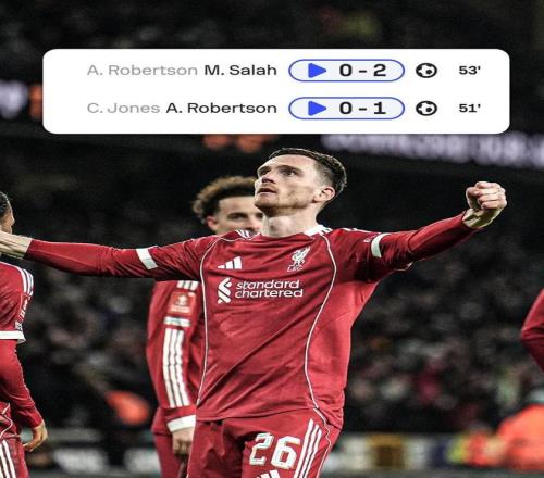 足总杯1/8决赛,利物浦客场对阵狼队,下半场罗伯逊贡献一球一助,这是罗伯逊自2021年12月以来首次单场传射建功。