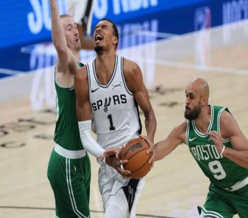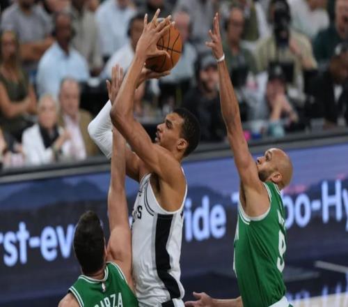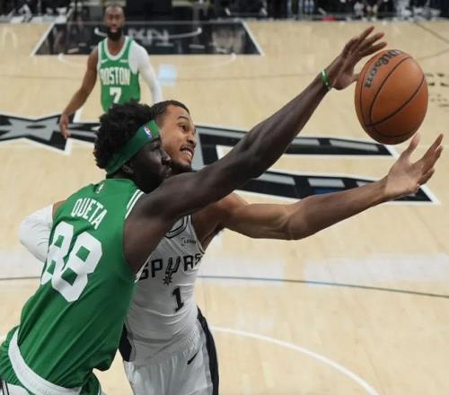 塔图姆三分球稳住局面,文班亚马立刻回应三分,联合卡斯尔和福克斯追平。半场两队打成58平!进入下半场,文班亚马和瓦塞尔下三分雨,加上福克斯的外线轰炸,绿军有些顶不住了!不过怀特站出来连续军训文班亚马,塔图姆迎着文班亚马滑翔上篮也中!中段怀特继续点名文班亚马,正面弧顶三分直接扔进,将马刺打停。不过马刺依靠约翰逊维持火力,文班亚马三分球也准,马刺保持微弱领先。三节打完时,马刺97-90领先,怀特出现抽筋的情况。决战第四节,塔图姆带队一路追到只差3分。