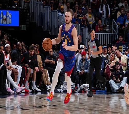 本场比赛中,掘金的先发侧翼球员克里斯蒂安-布劳恩(Christian Braun)的表现算得上是相当不错。布劳恩全场出场26分06秒,投篮10中8,三分线外4中3,以超高的效率得到了19分4篮板3助攻1抢断的数据,正负值为+20。布劳恩在本场比赛中难得打出了攻守兼备的全能型表现,他在进攻端效率奇高,他在无球移动,篮下终结和外线投篮方面的特点都得到了充分地施展,他还展现出了一定的传球能力和策应能力,他在进攻端的功能非常全面,他也是展现出了自己的全能性。布劳恩不仅在进攻端表现不错,他在防守端也是有着相当不错的表现的,同样是起到了关键的作用的。毫无疑问,布劳恩的一系列出色表现也是球队能够轻轻松松取得一场大胜的关键因素。