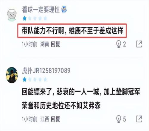 赛后,某篮球论坛球迷忍不住纷纷吐槽:“带队能力不行啊,雄鹿不至于差成这样”、“什么时候退役”、“没有那一脚,现在也就是个大号恩比德”......