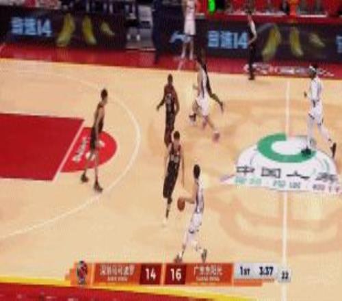 杜锋重新换上被王浩然打爆过的杜润旺,奎因强突制造2罚,王浩然篮下强起吃饼,5分20秒约翰逊反击突破再进,带领深圳一波14-9反超广东。