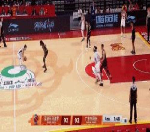 第四节深圳防守强度升级,王浩然+周鹏的锋线组合防守效果不错,让广东队完全突不进去,大多数时间内只能靠造犯规罚球上分;