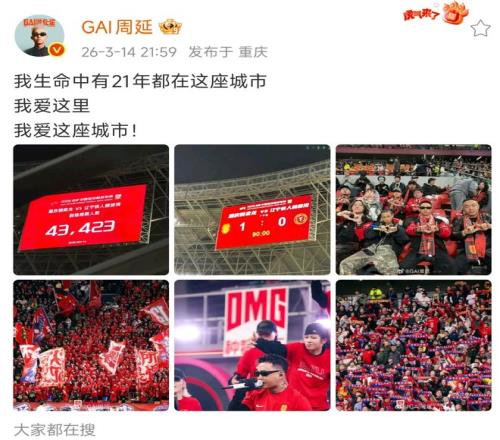 赛后,GAI也晒出现场观赛照片!表白重庆!