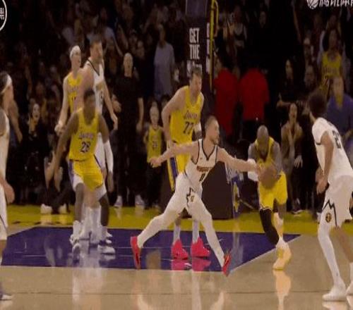 湖人一度领先到17分,但约基奇看破湖人策略,找布鲁斯·布朗,找底角的琼斯,连续追近。湖人则是卢卡与里夫斯轮流找穆雷。
