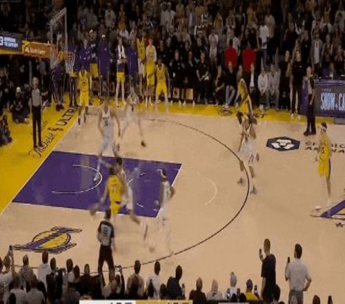 然后约基奇试图终结比赛:先趁湖人收缩弱侧,一个对角线长传助攻了哈达维远射,再精准拍掉里夫斯的上篮。