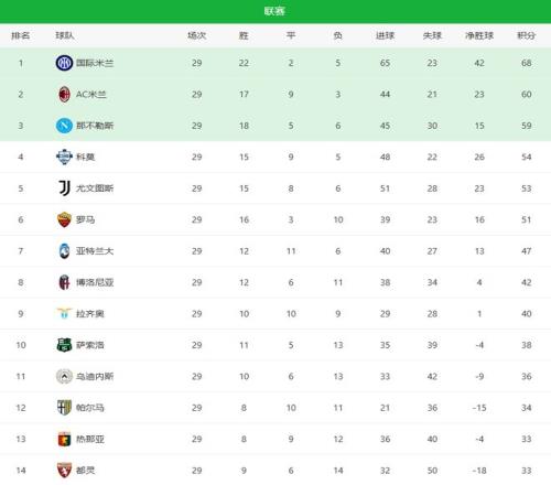 最终,AC米兰客场0-1不敌拉齐奥,错失了缩小与榜首差距的绝佳机会。这样一来,29轮比赛过后,AC米兰已经落后榜首国际米兰8分,在联赛仅剩9轮的情况下,争冠希望几乎可以宣告破灭。另外,米兰如今甚至连欧冠席位都未必稳固。虽然他们目前仍领先第五名尤文图斯7分,但后者在欧冠出局后已经把全部精力投入联赛,并取得两连胜,状态明显回升。如果米兰接下来继续丢分,争四格局随时可能发生变化。