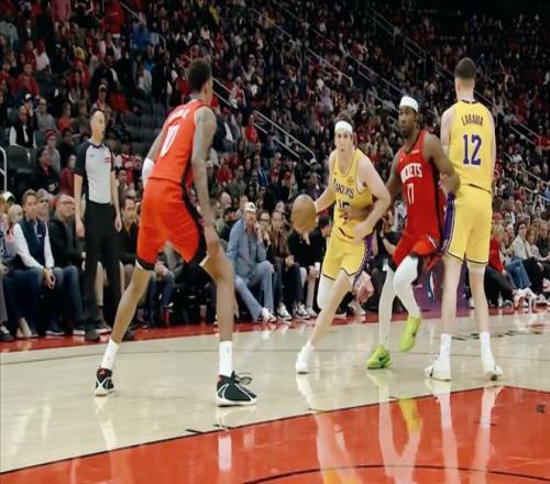 半场回来,阿门、贾巴里史密斯连续进攻得手,火箭将优势拉开到了10分!关键时刻,詹姆斯挺身而出,帮助湖人稳住局面。杜兰特进攻端突然断电,并且吃到了一级恶意犯规!一波14:2直接反超火箭!三节战罢,湖人凭借本节比赛的表现,反超3分。