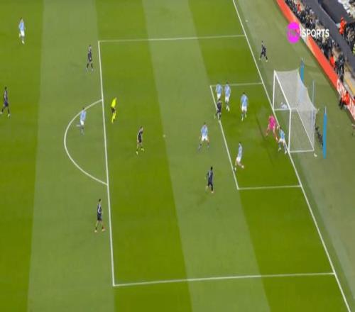 助理裁判举旗示意越位,但当时不清楚判的是维尼修斯(从巴尔韦德传球时看,他似乎并未越位)还是卜拉欣——巴尔韦德最初传球时,他处在曼城防线身后。