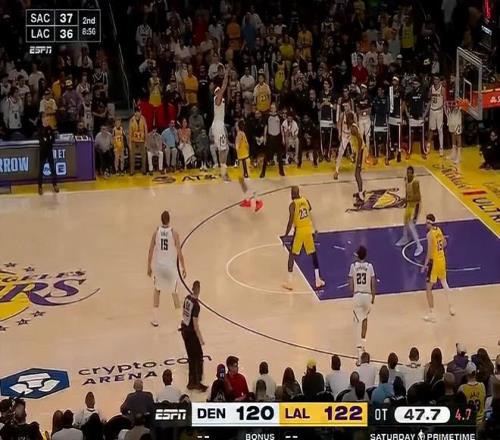掘金最后0.5秒仓促出手三分,连框都没碰到,比赛就此结束。掘金虽败犹荣,他们展现了极强的韧性和冠军底蕴,即便穆雷手感彻底崩盘,球队依然拼到最后一秒,差点完成惊天逆转。这场比赛打得湖人一身冷汗,如果季后赛首轮就遭遇掘金,那绝对是地狱级别的对决,难度系数拉满。从数据上看,湖人攻击确实拉满,虽然防守还是差。东契奇贡献30分11篮板13助攻3盖帽的三双表现,统治力十足;里夫斯32分7篮板6助攻;詹姆斯数据一般般17分6篮板5助攻2抢断,但这恰恰体现了他的成熟与清醒。
