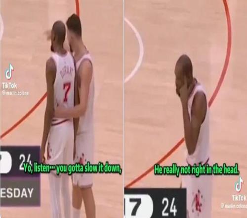 火箭这几天,场下新闻比场上比赛还热闹。先是昨天有媒体拍到一段视频,显示在火箭输湖人的比赛里,申京居然在场上“指点”杜兰特该怎么进攻!KD听完直接摊手摇头,还指了指自己的脑袋,好像在说“他脑子有问题”。