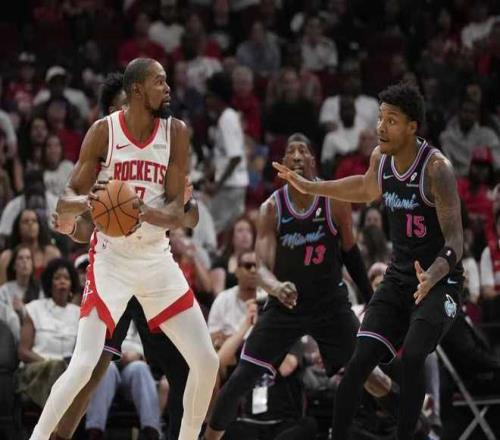 中场休息回来,热火连续两节单节得分30+,且限制火箭本场首次单节不足30分。杜兰特三分开火引领火箭取得67-65领先,热火冲击内线反超比分,火箭连得5分取得74-70领先。热火一波8-2攻势反超比分,双方交替领先缠斗至火箭85-83领先,热火打出一波13-2攻势反超比分,火箭单节23-33输掉10分,三节结束火箭87-96被热火反超。前三节比赛,杜兰特21分与阿门18+11,引领火箭4人得分15+;阿德巴约23+21与希罗25分,引领热火5人得分上双。