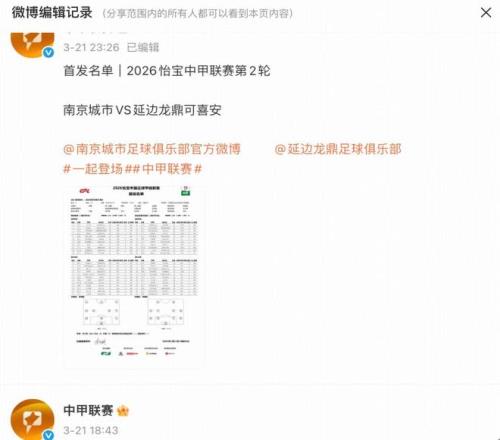 南京城市与延边龙鼎的比赛在3月21日进行,中甲联赛官方微博赛前发布的首发名单中,延边外援乔瓦尼是在其中的,但更新后他的名字出现在了替补席,首发的是王子豪。