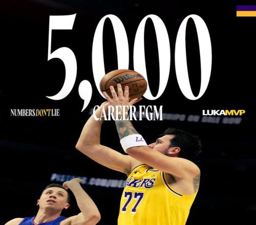 此外,东契奇在此役还创下了两大纪录。第1、数据显示,本场之前,东契奇生涯运动战进球数为4995个。上半场东契奇15中5,生涯命中数达到5000个。