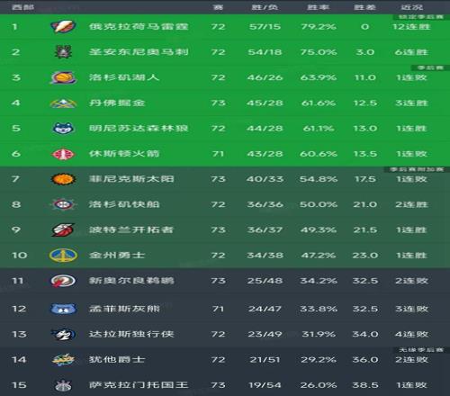 西部最新积分榜