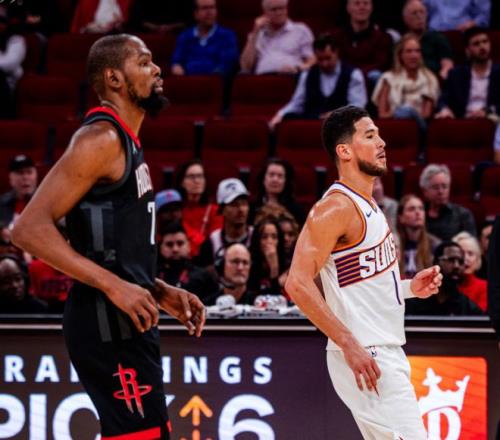 这就导致球队节奏一团糟!但在火箭身后,太阳这支球队很容易被忽略。开赛以来,太阳战绩40胜33负,落后火箭4个胜场,领先快船3.5个胜场,按理说他们位置挺稳固的。甚至说在全明星周末前,他们当时只落后前面球队两个胜场以内,但是在最近22场比赛中,他们只拿到9场胜利,明显后劲不足!这里有几个原因,内线的马威长时间缺阵,布鲁克斯手臂伤势+场外风波,但球队最大的问题,反而在球队老大布克身上。首先,去年夏天,布克和太阳完成2年1.35亿续约合同,加之之前签下的4年2.24亿美元。