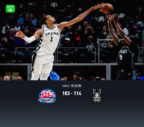 马刺114103客胜活塞豪取9连胜,文班21+17+6帽,坎宁安26中5得16分