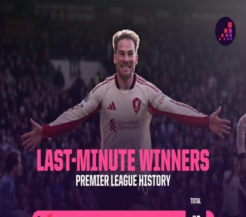 英超第90分钟后制胜球榜:利物浦48次居首,阿森纳36次第二