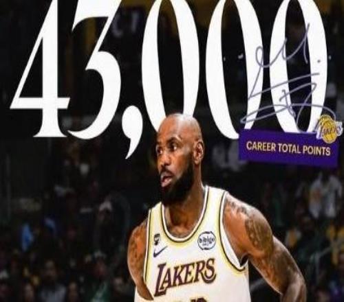 2月23日,湖人球星勒布朗-詹姆斯达成职业生涯43000分里程碑。赛后他也转发了自己得到43000分的海报,并配文:“继...
