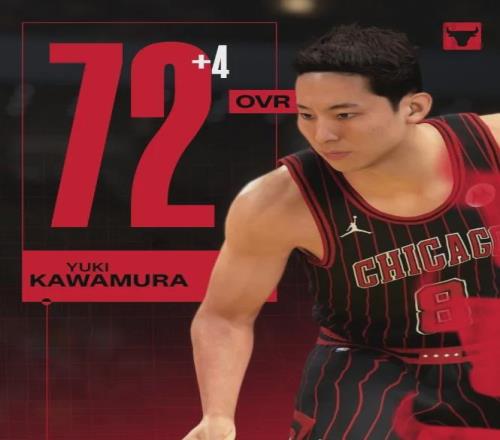 2月17日,NBA公牛队官方晒出河村勇辉的2K游戏截图,根据图片显示,河村勇辉的2K评分上升4点,提升到72,了解2K的球迷...