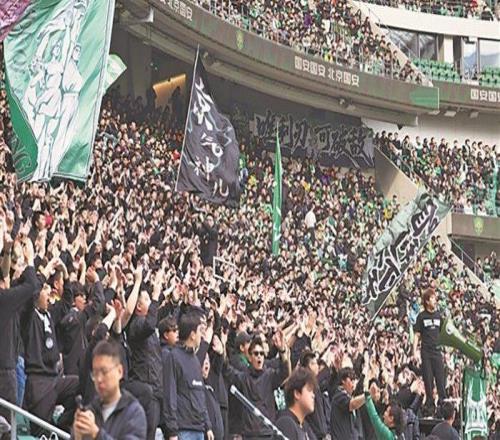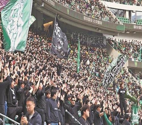 图为北京国安队球迷为球员呐喊助威。工人日报记者 窦菲涛 摄李元浩用什么来迎接一场阔别17年的中国足球顶级...