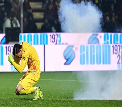 北京时间2月2日,在克雷莫内塞对阵国际米兰比赛的下半场,一名19岁的国米极端球迷向门将奥代罗附近投掷了一枚鞭...